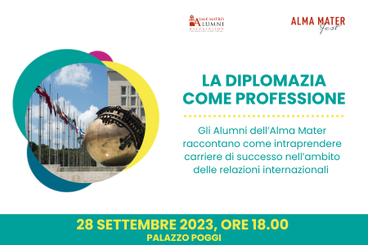 Nella cornice di eventi dell'Alma Mater Fest un momento di incontro con Alumne e Alumni diplomatici impegnati in Italia e nelle principali istituzioni internazionali. Grazie al loro racconto proveremo a ripercorrere insieme i passi di una carriera spesso ritenuta impossibile ma che con passione e impegno può regalare stimoli e soddisfazioni.