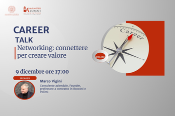 Un percorso di seminari gratuiti "Career Talks" tenuti da esperti Business Coach e da formatori che ci guidano nell’approfondimento di temi di carriera come le scelte per costruire o ri-costruire la propria carriera, la consapevolezza personale e la gestione delle emozioni e tanto altro.