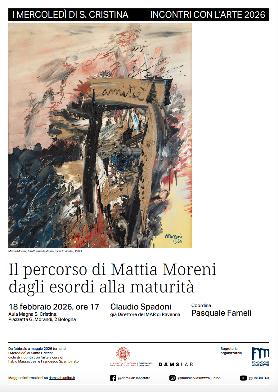 Il Ciclo mira a un confronto sempre stimolante e propositivo attraverso il quale la sezione Arti Visive e Moda del Dipartimento delle Arti dell’Università di Bologna si apre alla Città su temi della storia dell’arte nelle sue più diverse manifestazioni e metodologie.