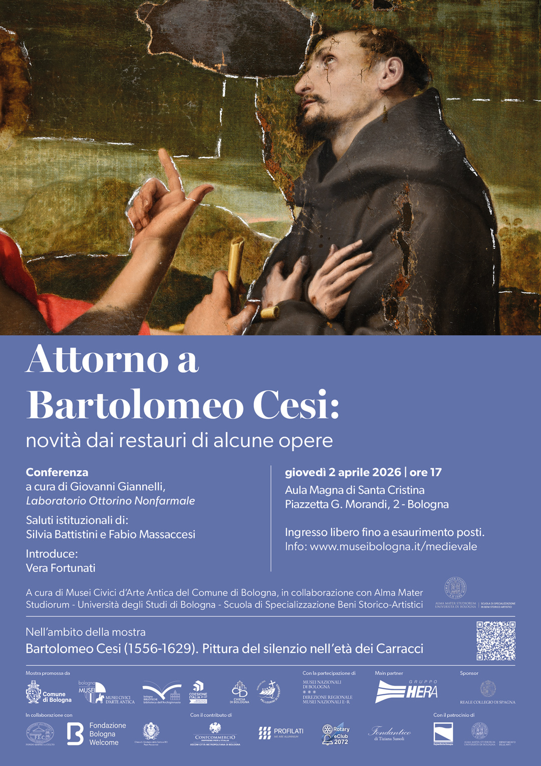 In occasione della mostra Bartolomeo Cesi (1556-1629). Pittura del silenzio nell’età dei Carracci, si terrà la conferenza “Attorno a Bartolomeo Cesi: novità dai restauri di alcune opere”, a cura di Giovanni Giannelli, direttore tecnico del Laboratorio di Restauro Ottorino Nonfarmale.