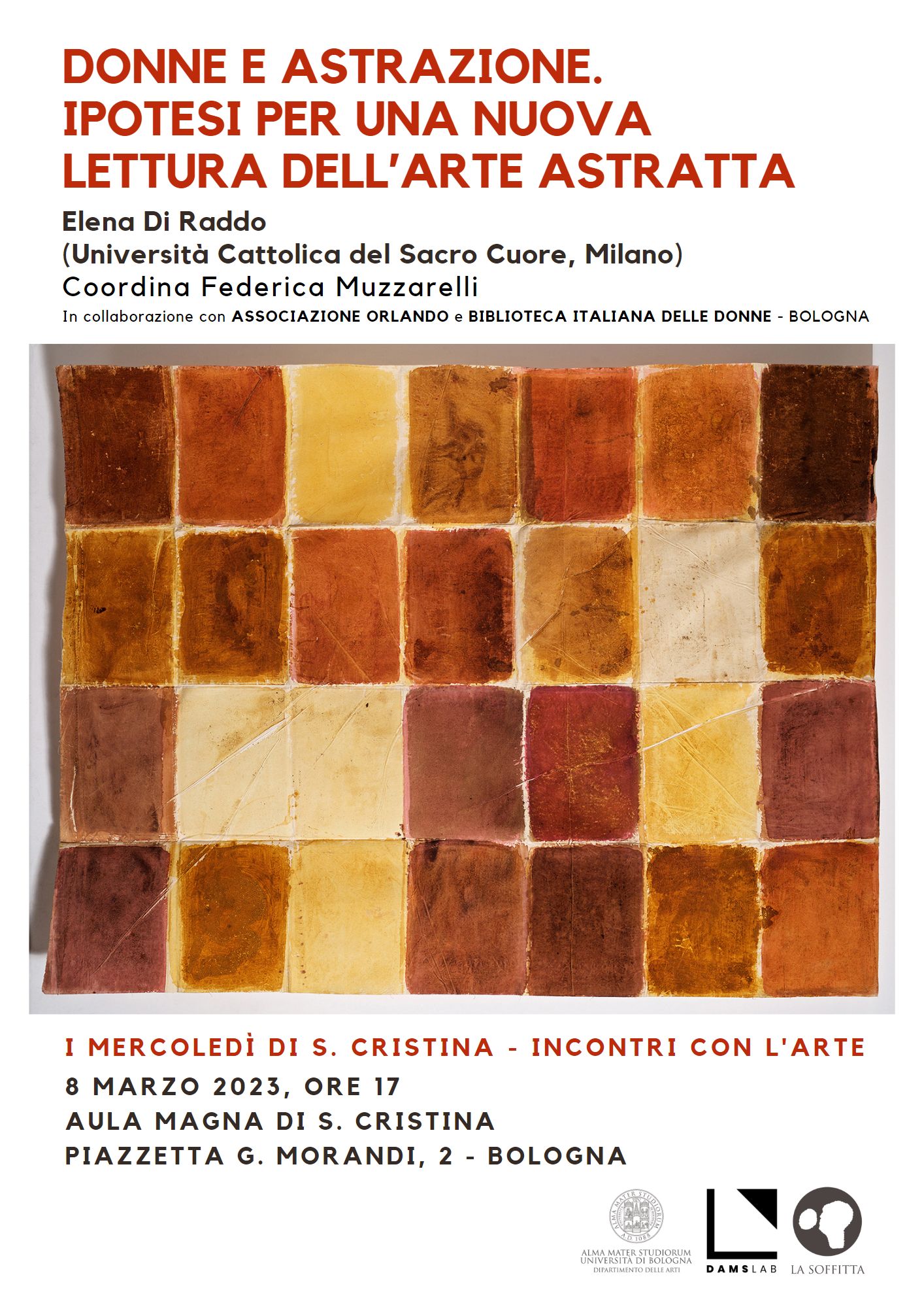 Nell'ambito dell'annuale ciclo de "I Mercoledì di S. Cristina", la conferenza, a cura di Elena DI Raddo (Università Cattolica del Sacro Cuore, Milano) si propone di approfondire il contributo delle donne all'interno della corrente dall'arte astratta. Coordina Federica Muzzarelli.