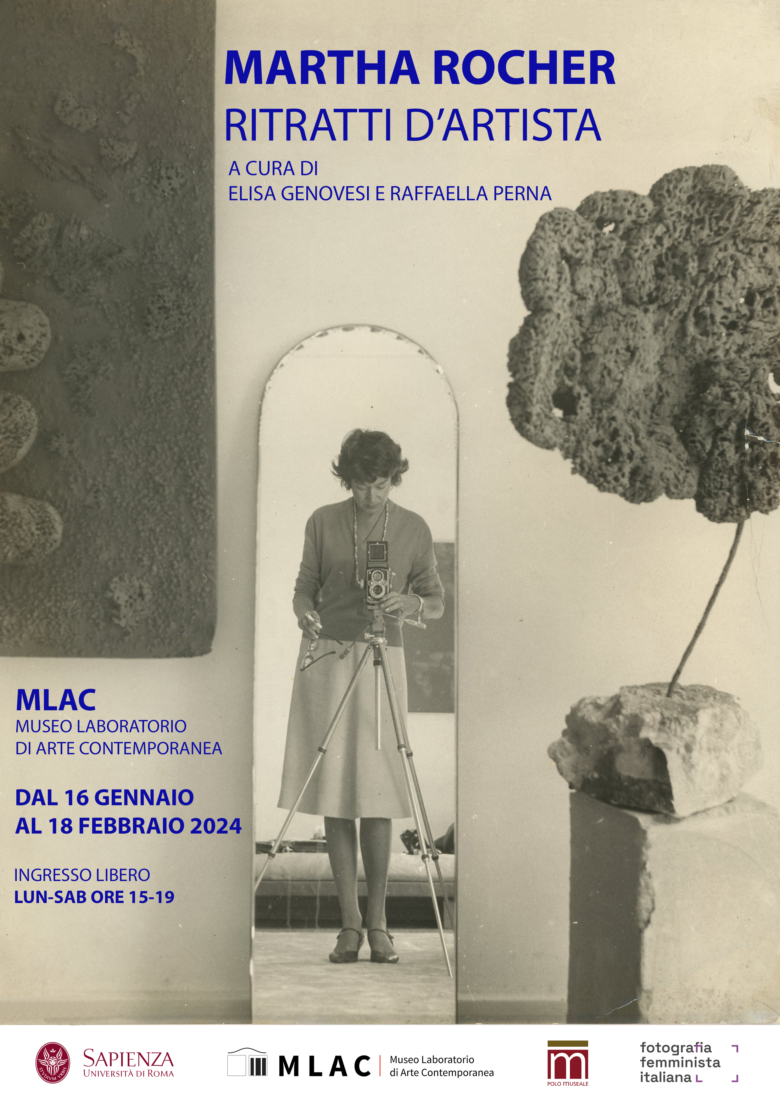 La mostra intende riscoprire e valorizzare il lavoro di una fotografa rimasta ai margini della storiografia, al fine di gettare luce sul ruolo delle donne nella cultura fotografica italiana. L’alta qualità dei ritratti esposti al MLAC dimostra infatti come l’attività fotografica di Rocher nasca, al pari di quella di autori della sua generazione come Mario Dondero o Ugo Mulas, dalla familiarità con gli artisti e da un’approfondita conoscenza dell’arte d’avanguardia. Il cono d’ombra caduto sull’opera di Rocher ci porta a riflettere sulle difficoltà incontrate dalle fotografe per affermarsi come professioniste entro un contesto socio-culturale sessista e sulla necessità di ridefinire e allargare il canone della storia della fotografia. Studiare l’opera di fotografe dimenticate o trascurate dagli studi, attive in Italia sino al 1980, è uno tra gli obiettivi del PRIN 2020 – La fotografia femminista italiana, progetto di ricerca condotto dall’Università di Bologna (Principal Investigator e Responsabile Unità di Ricerca, Prof.ssa Federica Muzzarelli), dall’Università di Parma (Responsabile Unità di Ricerca, Prof.ssa Cristina Casero); e da Sapienza Università di Roma (Responsabile Unità di Ricerca, Prof.ssa Raffaella Perna), in collaborazione con l’Università Roma Tre (Prof.ssa Lara Conte).