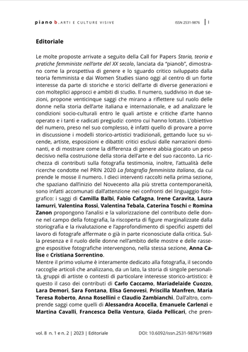From the beginning of the twenty-first century, the expression photobook has proven highly successful in the wake of a rich series of studies, festivals, workshops, fairs, and publishing initiatives. The term photobook has, however, often been used to indicate, without much distinction, different types of photographic books that do not necessarily share aesthetic, political, or social aims, generating misleading perspectives on the genre. In order to examine the history of feminist photobooks in Italy in the 1970s, this article analyzes both the material and symbolic structures of these books as well as the contexts of their production and circulation, the artists’ careers, and their relationship to Italian neofeminism. Through a selection of books, the article offers case studies that can be considered significant examples of the relationship between photography, artist’s books, and feminist politics in the specific context of Italy in the 1970s.