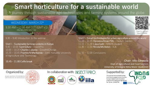 Una giornata di confronto e scoperta per gli studenti di Agraria dell’Alma Mater Studiorum – Università di Bologna, dedicata all’orticoltura sostenibile e innovativa in contesti diversi del mondo. Il 22 Marzo 2023, imprenditori agricoli, ricercatori, studenti e attivisti hanno condiviso esperienze e visioni su come la smart horticulture possa prendere forma dal Kenya alla Spagna, fino all’America Latina. Dall’insect farming all’idroponia semplificata, dall’acquaponica all’orticoltura terapeutica: il webinar, pubblicamente accessibile, ha mostrato che la smart horticulture può essere non solo una risposta alle sfide della sicurezza alimentare, ma anche un’opportunità di innovazione e inclusione sociale, dimostrando che la sostenibilità non ha un’unica strada, ma può esprimersi in diverse soluzioni concrete e creative