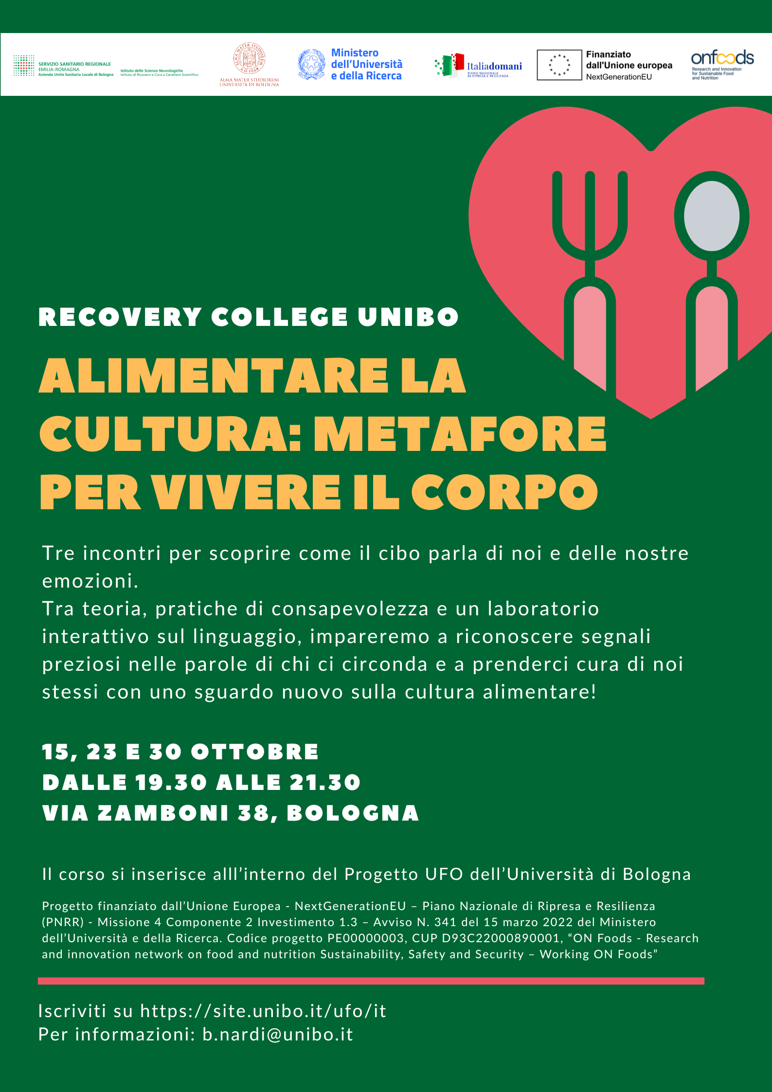 Il corso “Alimentare la cultura: metafore per vivere il corpo” fa parte del programma del Recovery College Unibo e propone una serie di incontri dedicati alla cultura alimentare e al rapporto tra cibo e benessere.